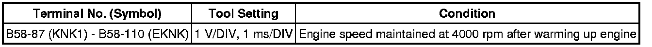 The knock feedback value change can be confirmed by running the engine with a high load, for example, by activating the air conditioning system and racing the engine.