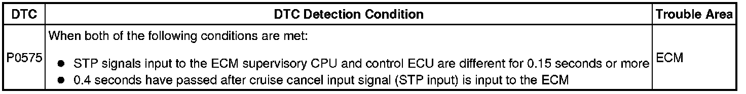 CRUISE CONTROL: CRUISE CONTROL SYSTEM: P0575: Cruise Control Input Circuit