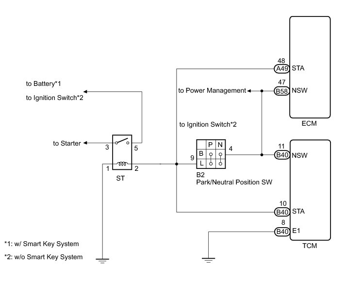 If the TCM detects the Starter Control (STA) signal while the vehicle is being driven, it determines that there is a malfunction in the STA circuit. The TCM then illuminates the MIL and sets the DTC.