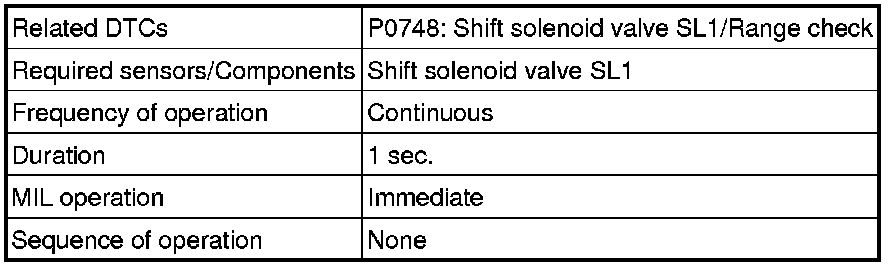 U760E AUTOMATIC TRANSMISSION / TRANSAXLE: AUTOMATIC TRANSAXLE SYSTEM: P0748: Pressure Control Solenoid "A" Electrical (Shift Solenoid Valve SL1)