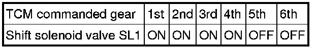 The following table shows normal operation of the shift solenoid valve SL1 when the shift lever is in D: