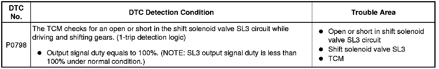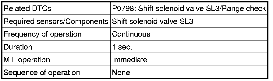 U760E AUTOMATIC TRANSMISSION / TRANSAXLE: AUTOMATIC TRANSAXLE SYSTEM: P0798: Pressure Control Solenoid "C" Electrical (Shift Solenoid Valve SL3)