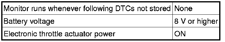 When this DTC or other DTCs relating to Electronic Throttle Control System (ETCS) malfunctions, are stored, the ECM enters fail-safe mode. During fail-safe mode, the ECM cuts the current to the throttle actuator, and the throttle valve is returned to a 6° throttle angle by the return spring. The ECM then adjusts the engine output by controlling the fuel injection (intermittent fuel-cut) and ignition timing, in accordance with the accelerator pedal opening angle, to allow the vehicle to continue at a minimal speed. If the accelerator pedal is depressed firmly and gently, the vehicle can be driven slowly.