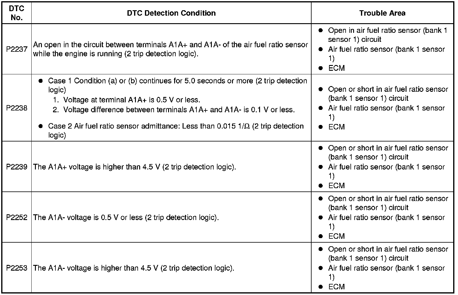 P2253 (Air Fuel Ratio Sensor Short Circuit Between A1A- and +B)