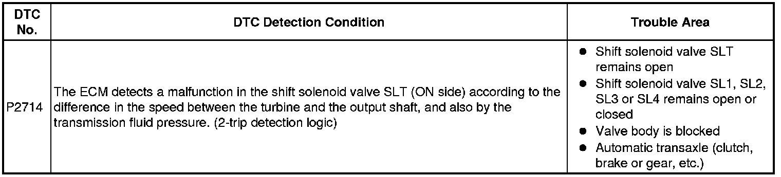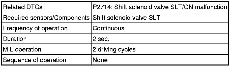 U760E AUTOMATIC TRANSMISSION / TRANSAXLE: AUTOMATIC TRANSAXLE SYSTEM: P2714: Pressure Control Solenoid "D" Performance (Shift Solenoid Valve SLT)
