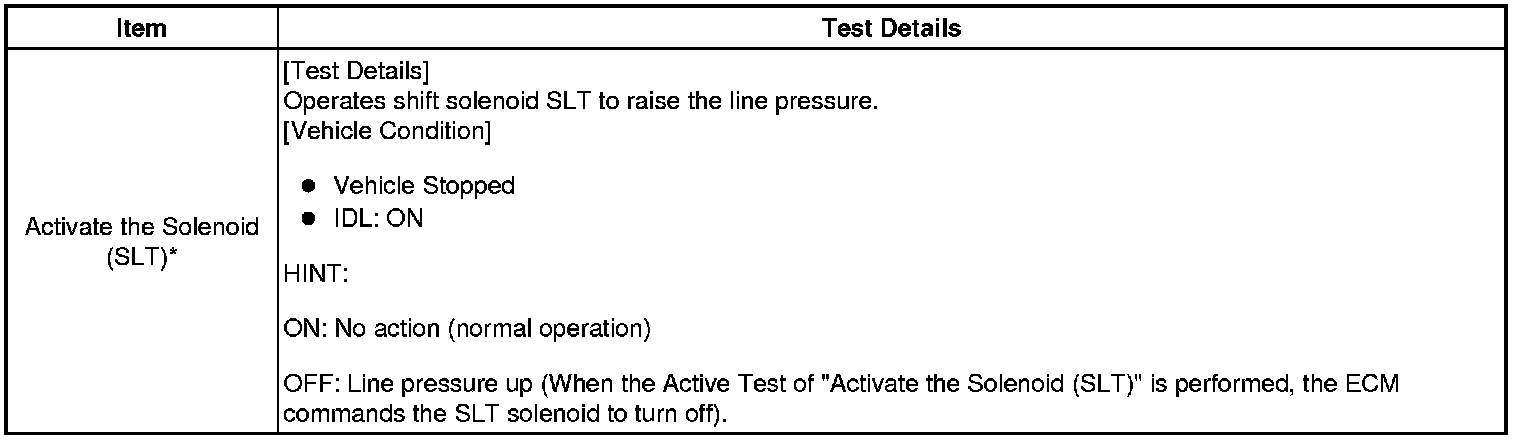 *: "Activate the Solenoid (SLT)" in the Active Test is performed to check that the line pressure changes by connecting the SST to the automatic transaxle. The same SST is used in the Hydraulic Test Hydraulic Test as well.