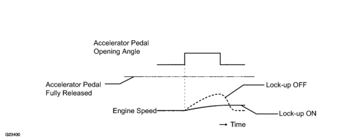 * Slowly release, but not fully, the accelerator pedal in order to decelerate. (Fully releasing the pedal will close the throttle valve and lock-up may be turned off.)