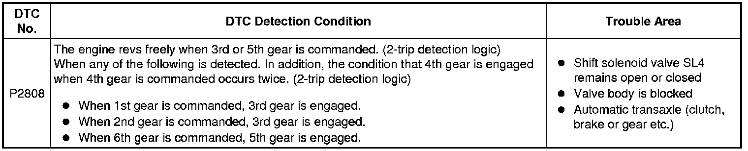 P2808 - Pressure Control Solenoid "G" Performance (Shift Solenoid Valve SL4)