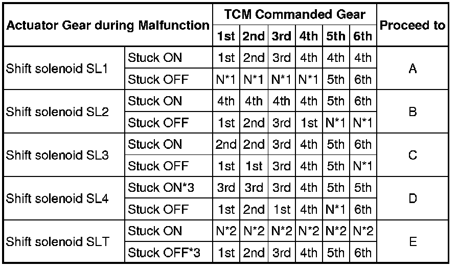 * *3: When shift solenoid SLT is stuck off, gear shifting is normal.