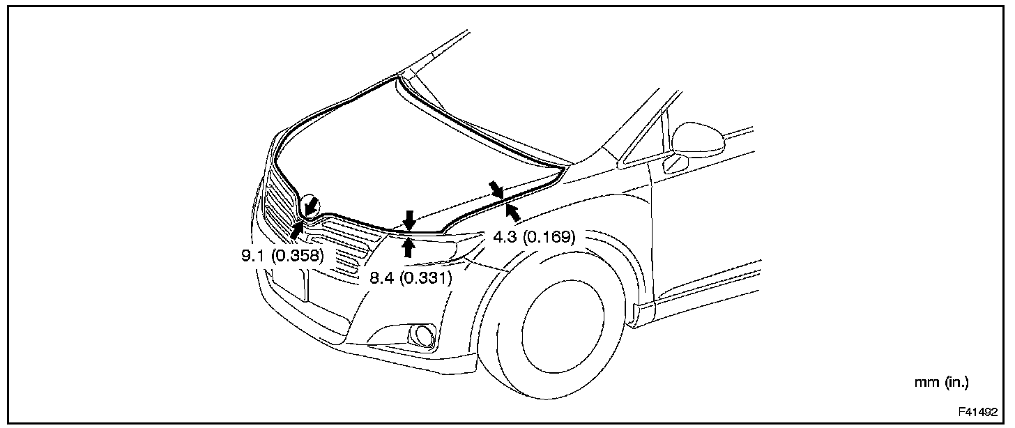 2. Adjust the clearance between the hood and front fender by moving the hood.