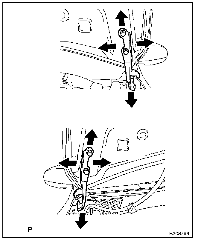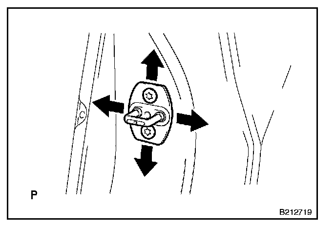 a. Using SST, loosen the hinge bolts on the vehicle body and adjust the door position.