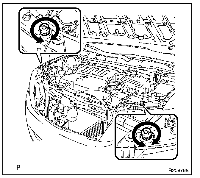 HINT: Raise or lower the front end of the hood by turning the 2 cushion rubbers.