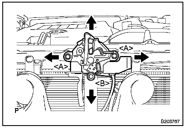 b. Adjust the height of the front end of the hood using the cushion rubbers.