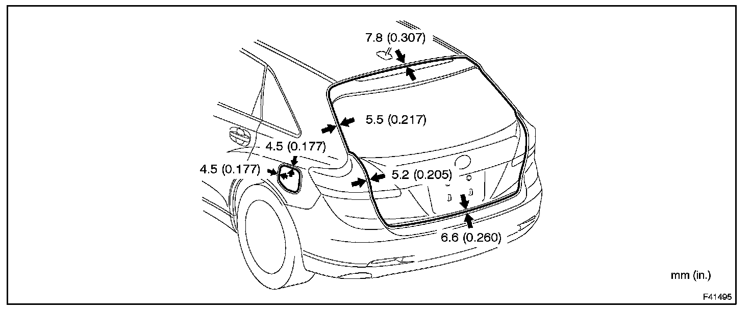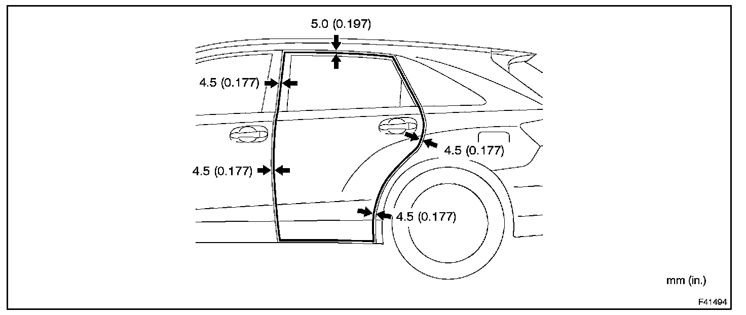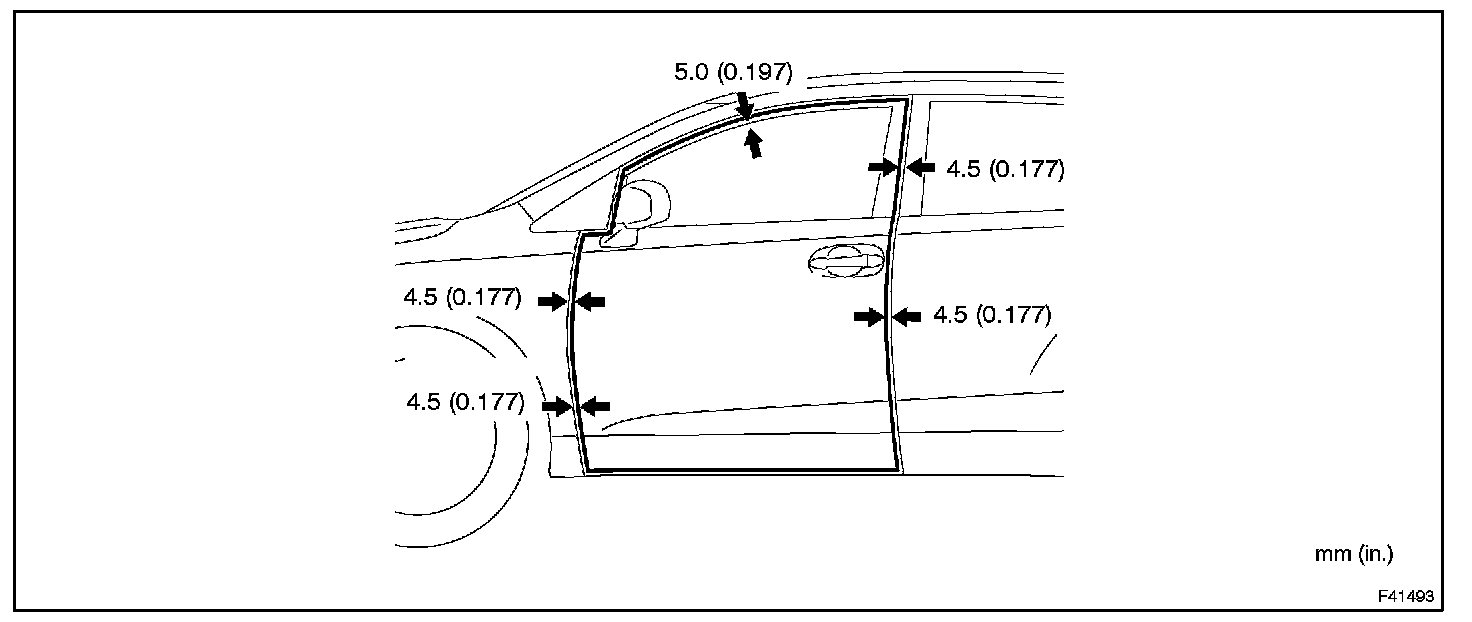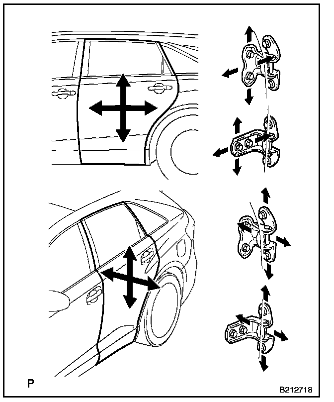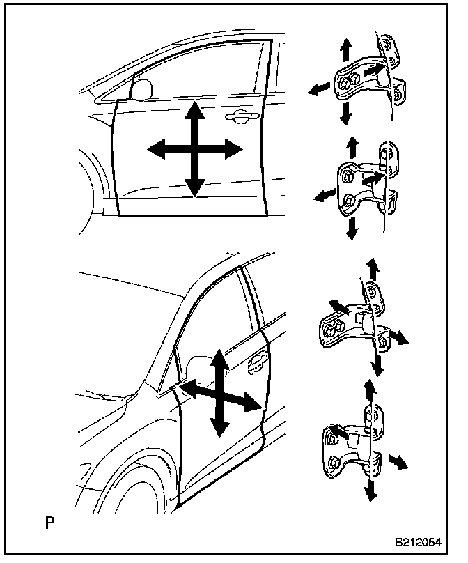 CAUTION: Before adjusting the door positions of vehicles equipped with side and curtain shield airbags, be sure to disconnect the battery. After adjustment, check that the SRS warning light is operating normally and there are no SRS DTCs output.