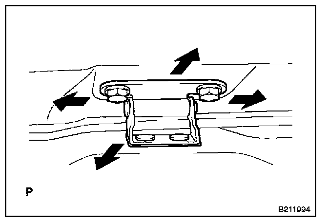 HINT: Centering bolts are used to mount the hood hinge and hood lock. The hood and hood lock cannot be adjusted with the centering bolts installed. Substitute the centering bolts with standard bolts when making adjustments.