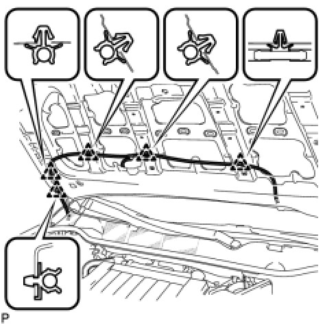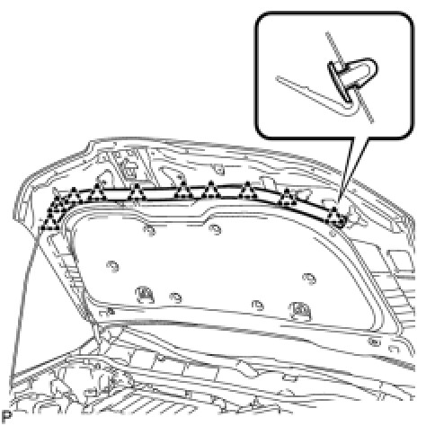 (a) Using a clip remover, disengage the 10 clips and remove the hood to radiator support seal.