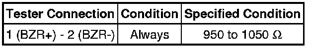 If the result is not as specified, replace the power back door warning buzzer.