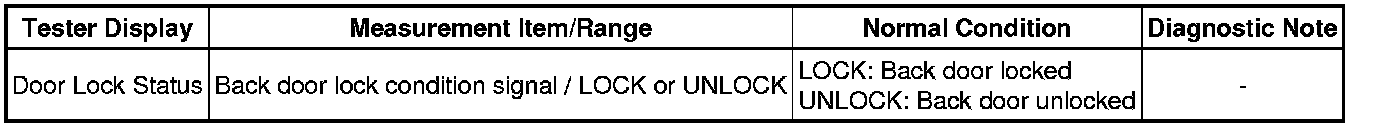 (d) Enter the following menus: Body Electrical / Back Door / Data List.