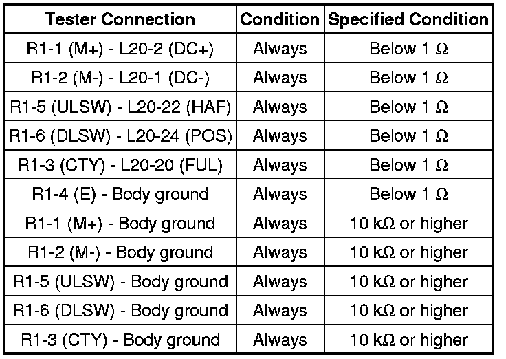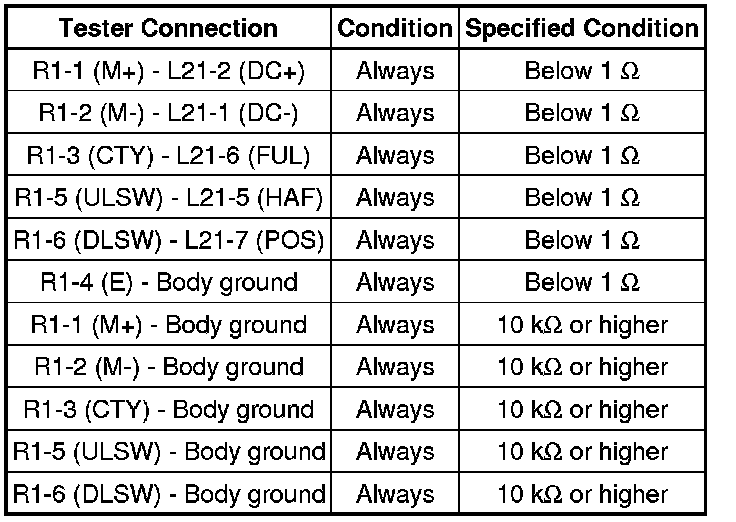 (2) Measure the resistance according to the value(s) in the table below.