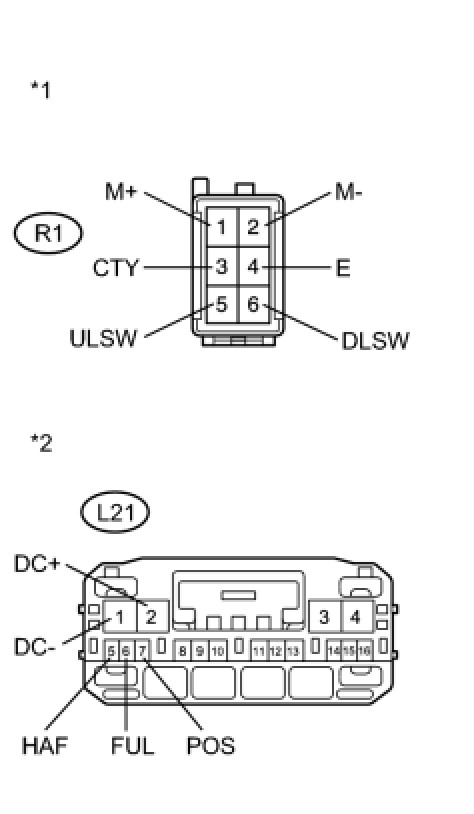 (1) Disconnect the R1 back door lock assembly connector and L21 back door closer ECU connector.