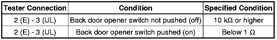 6. INSPECT BACK DOOR OPENER SWITCH ASSEMBLY