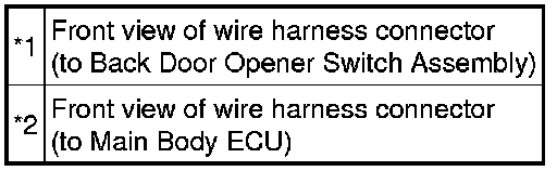 When the back door cannot be opened, one of the following may be malfunctioning: 1) power back door ECU (power back door motor unit)*1 or back door closer ECU (multiplex network door ECU)*2, 2) back door lock assembly, 3) back door opener switch assembly, or 4) main body ECU (driver side junction block assembly).