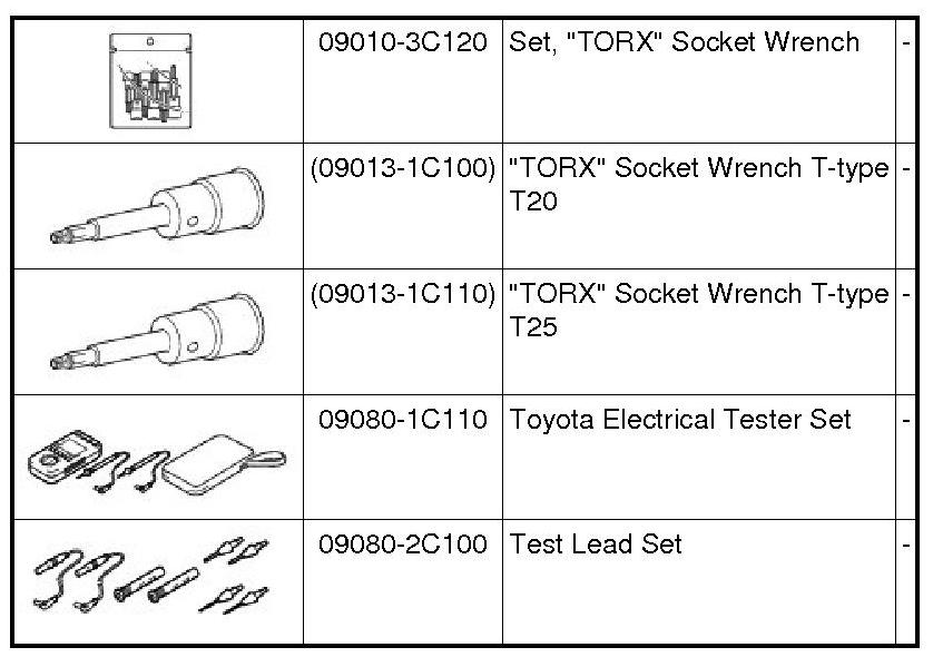 PREPARATION: SLIDING ROOF / CONVERTIBLE: RECOMMENDED TOOLS