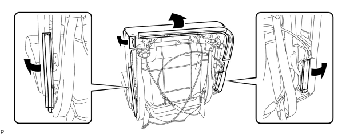 (a) Disengage the 2 hog rings and remove the rear seatback cover with pad.