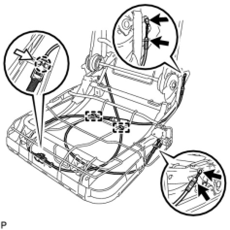 (c) Engage the 4 cable clamps to install the rear seat No. 2 reclining control cable sub-assembly.