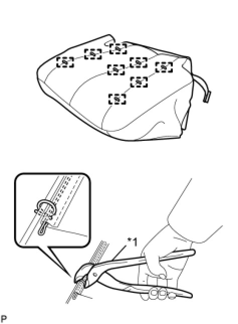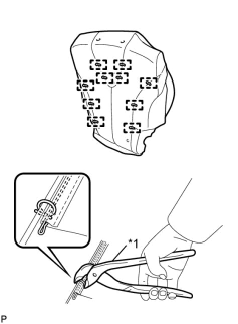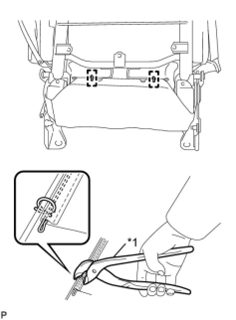 (a) Using hog ring pliers, install the separate type rear seat cushion cover with 8 new hog rings.