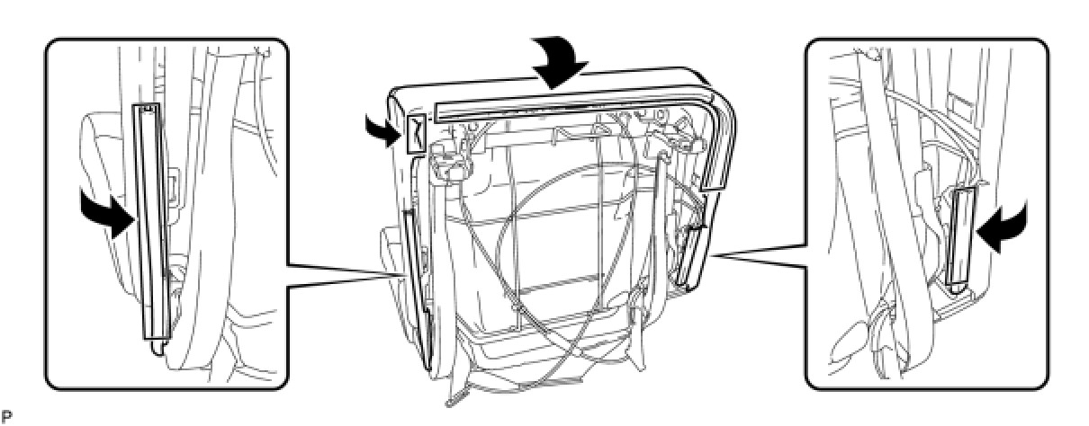 (a) Using hog ring pliers, install the rear seatback cover with pad with 2 new hog rings.