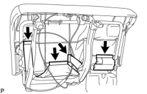 (a) Engage the 2 claws to install the rear seat headrest support RH.