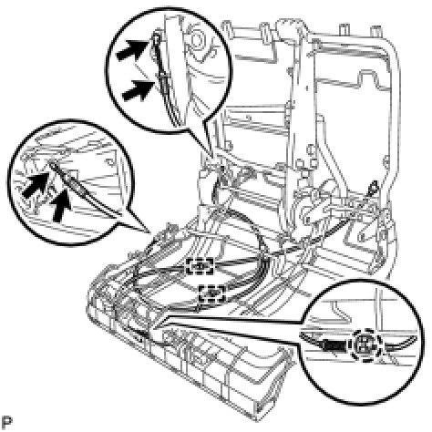 (c) Engage the 4 cable clamps to install the rear seat reclining control cable sub-assembly.