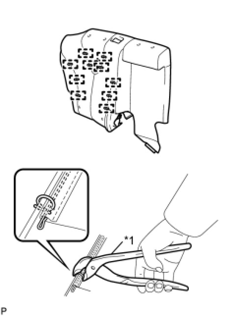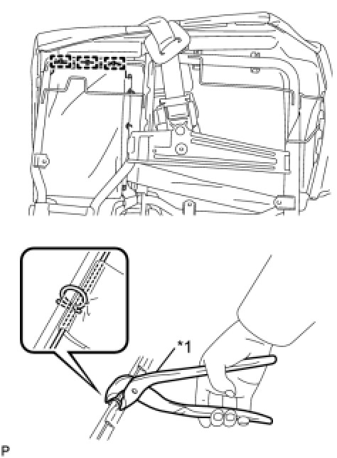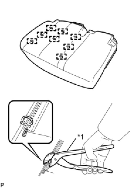 (a) Using hog ring pliers, install the separate type rear seat cushion cover with 8 new hog rings.