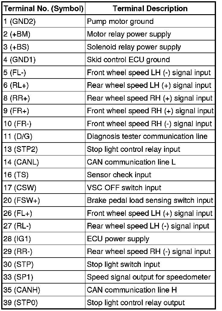 BRAKE CONTROL / DYNAMIC CONTROL SYSTEMS: VEHICLE STABILITY CONTROL SYSTEM: TERMINALS OF ECU