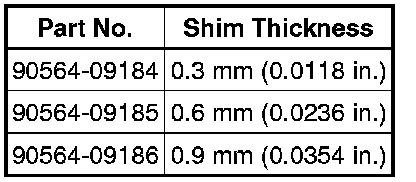 If the clearance is not as specified, replace the shim with one of the appropriate size.
