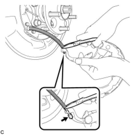 (a) Using needle-nose pliers, connect the No. 3 parking brake cable assembly to the parking brake shoe lever as shown in the illustration.