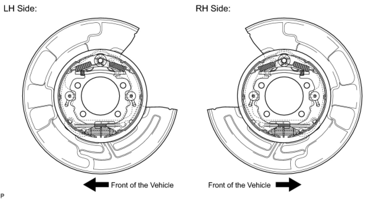 (a) Install the No. 2 parking brake shoe assembly to the backing plate with the No. 1 parking brake shoe hold down spring cup, parking brake shoe hold down spring and No. 2 parking brake shoe hold down spring cup.