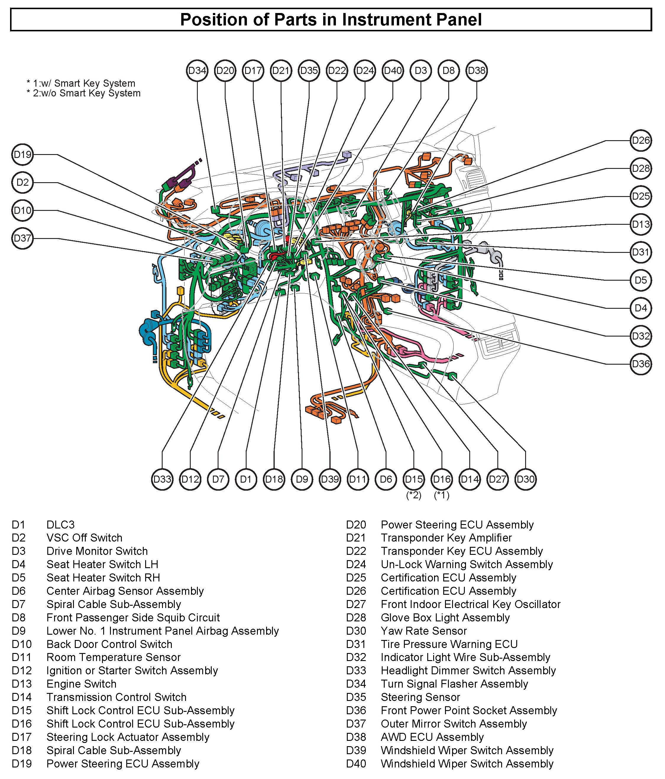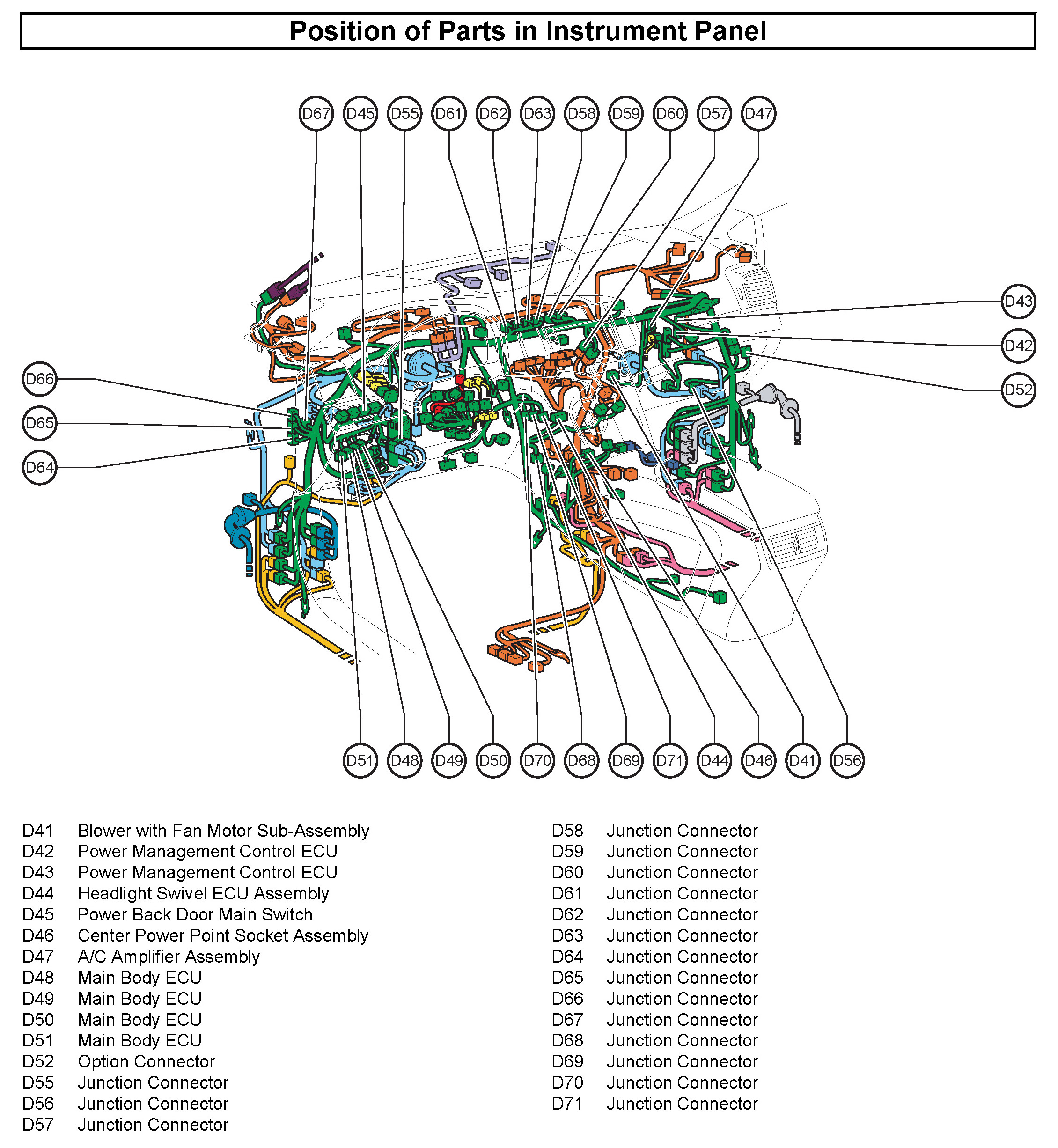 50 - Position of Parts In Instrument Panel: