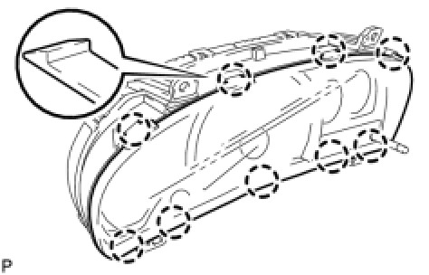 Engage the 9 claws to install the combination meter glass.