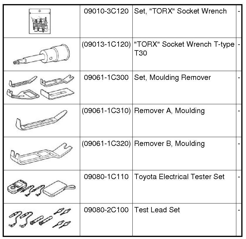 PREPARATION: LIGHTING (INT): RECOMMENDED TOOLS