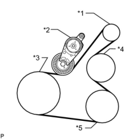 (a) Set the V-ribbed belt onto each part as shown in the illustration except the water pump pulley.
