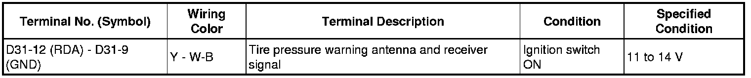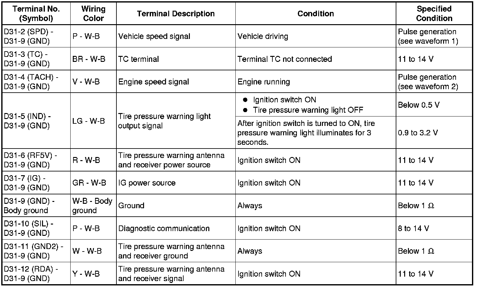 TIRE PRESSURE MONITORING: TIRE PRESSURE WARNING SYSTEM: TERMINALS OF ECU
