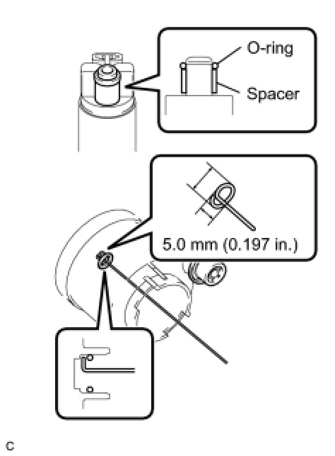 If the O-ring still remains in the fuel filter, remove it using a wire tip (dia1 mm) that is formed as shown in the illustration.