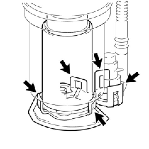 (b) Engage the 5 claws on the fuel filter and install the fuel pump assembly with filter.
