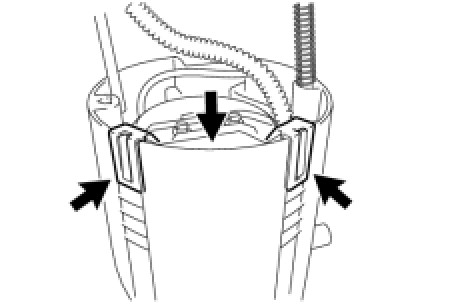 (d) Install the fuel filter to the sub-tank and attach the 2 claws.