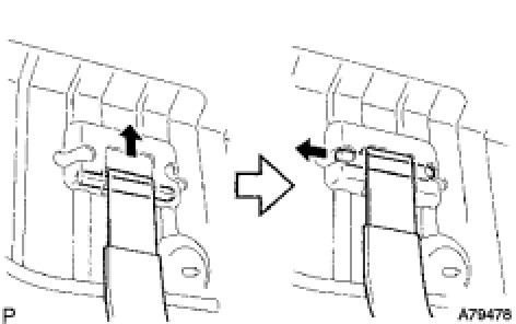 (1) Pinch the tabs of the retainer to release the lock claws and pull it down as shown in the illustration.