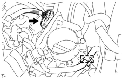 (d) Connect the 2 water by-pass hoses to the throttle body.