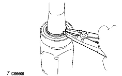 (f) Using a snap ring expander, install a new shaft snap ring.