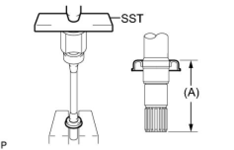 (a) Using SST and a press, install a new front drive shaft dust cover RH until the distance (A) from the tip of the center drive shaft to the front drive shaft dust cover RH meets the specification.